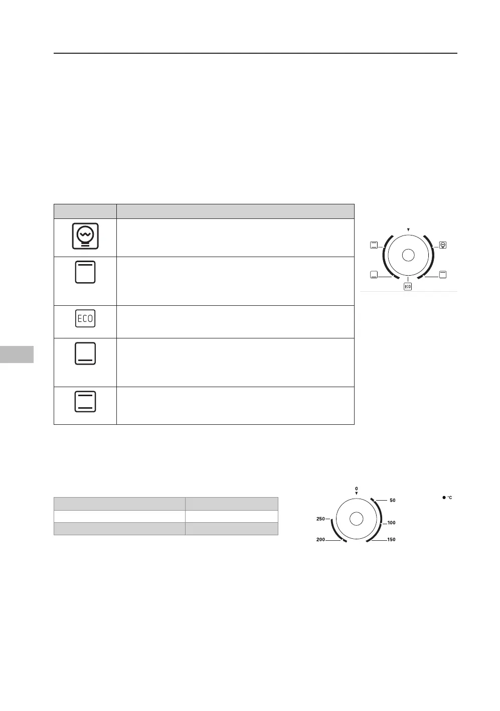 • Hvis indikatoren ikke lyser, er temperaturen i ovnen nået den indstillede temperatur. I dette tilfælde, er