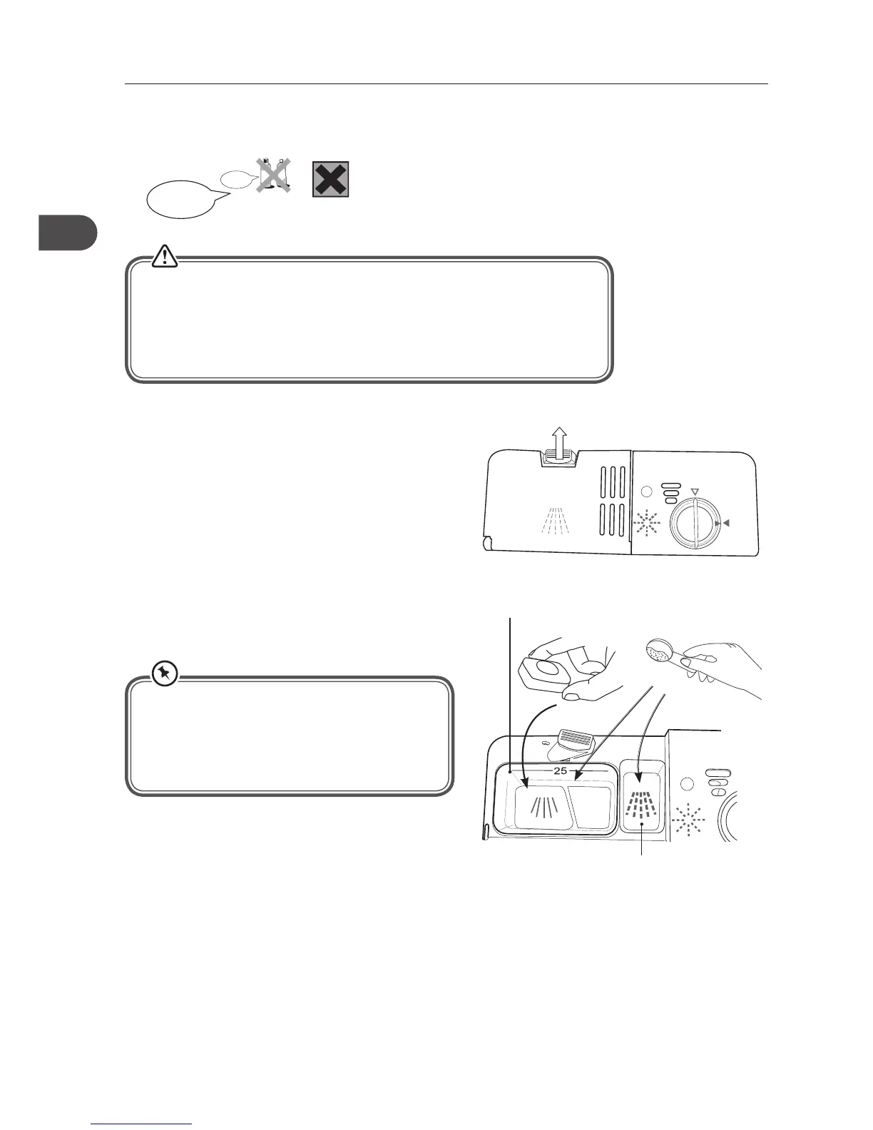 Please follow the steps below to fill the detergent dispenser.