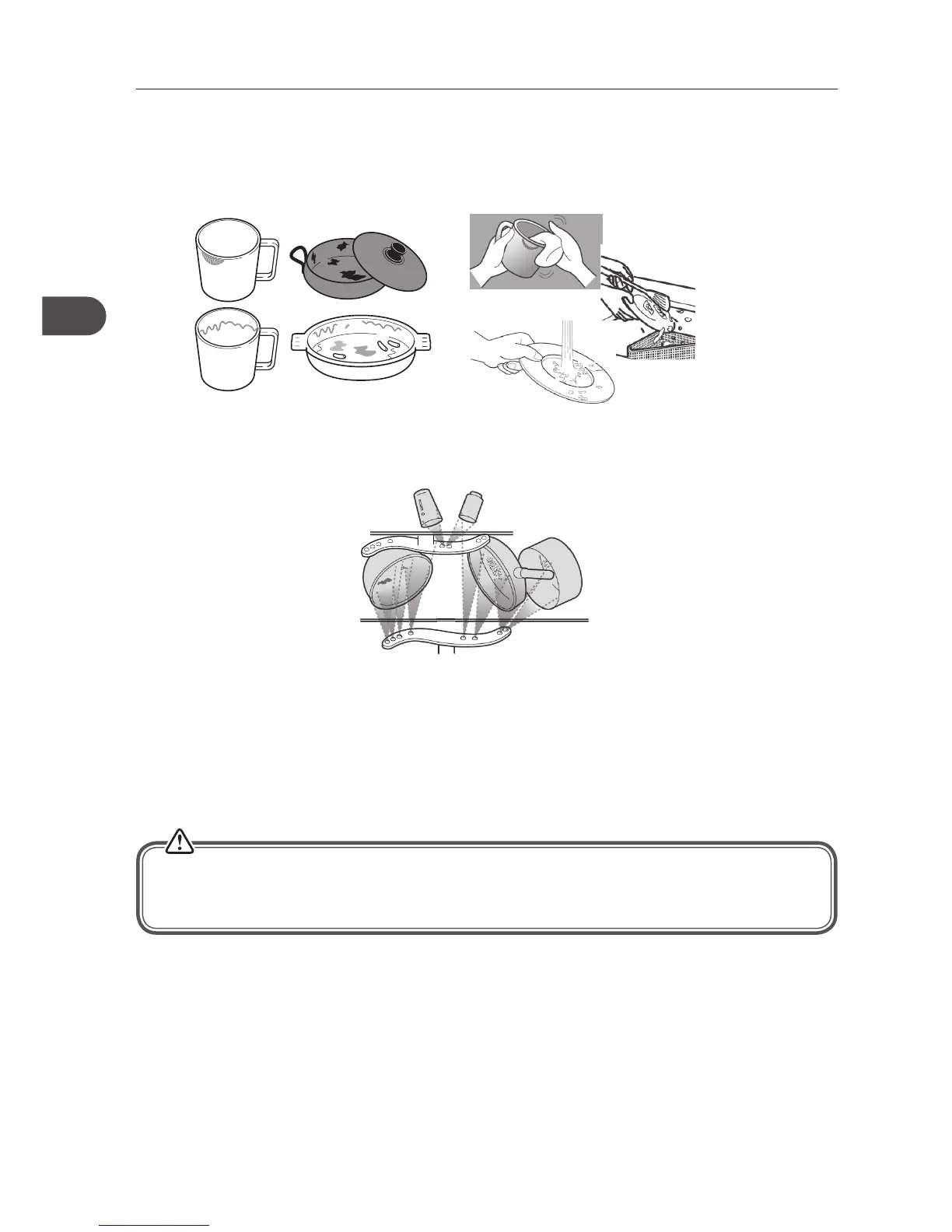 • Hule gjenstander som kopper, glass, kjeler osv. må plasseres opp ned i kurven.