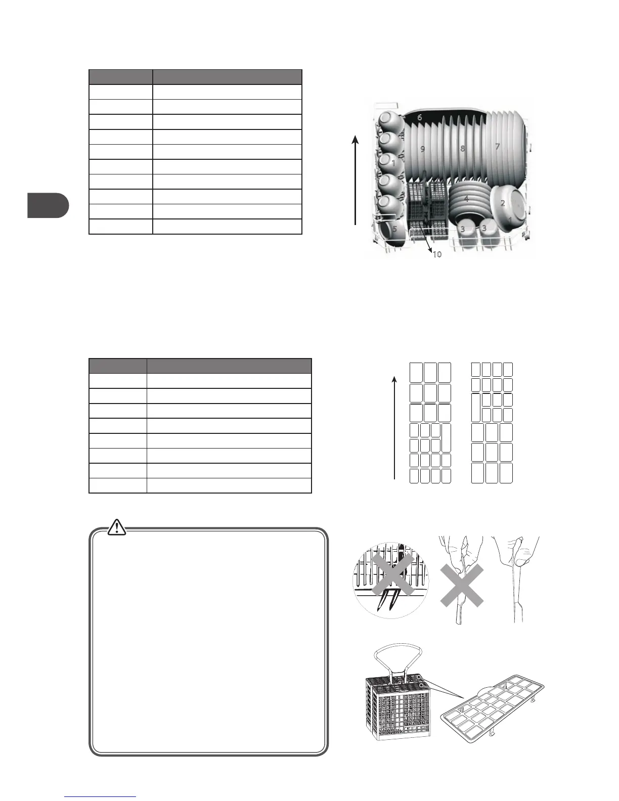 Du kan sette inn i oppvaskmaskinkurven i henhold til tabellen under.