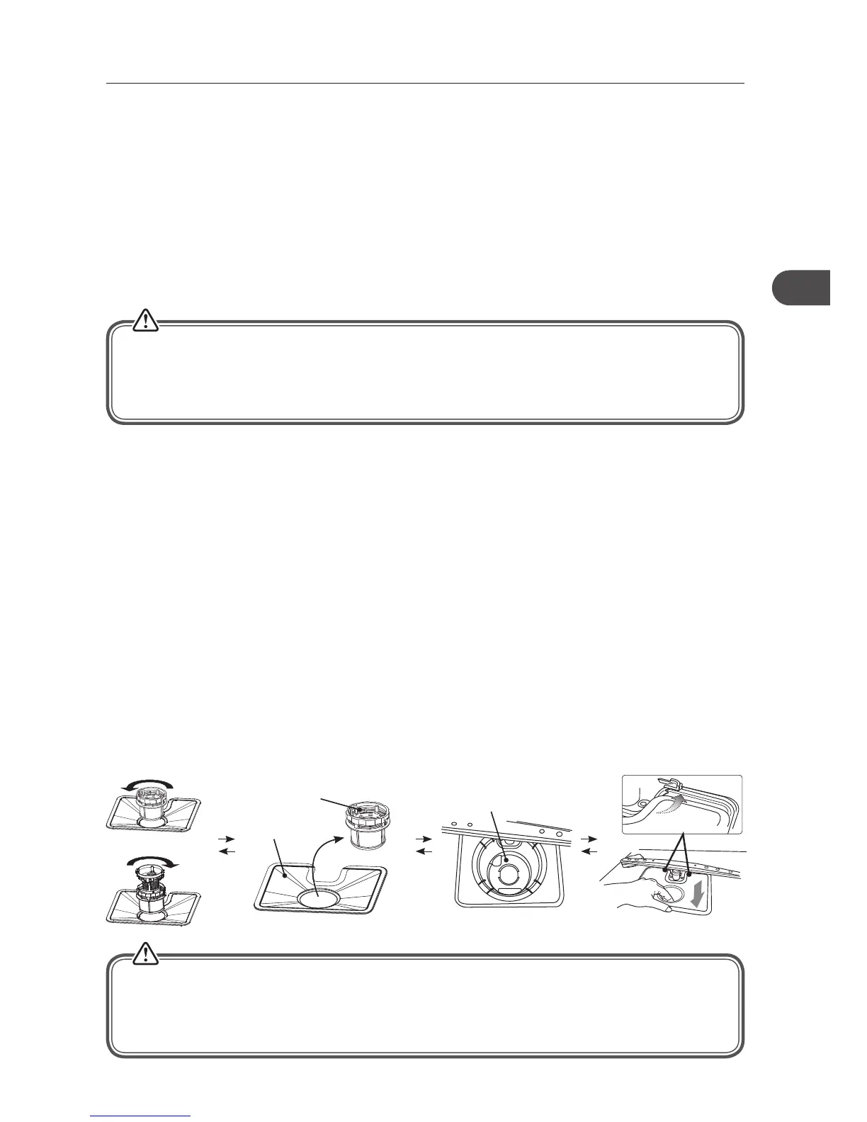 • IKKE bruk oppvaskmaskinen uten at filtrene er på plass. Hvis du setter filtrene tilbake på feil