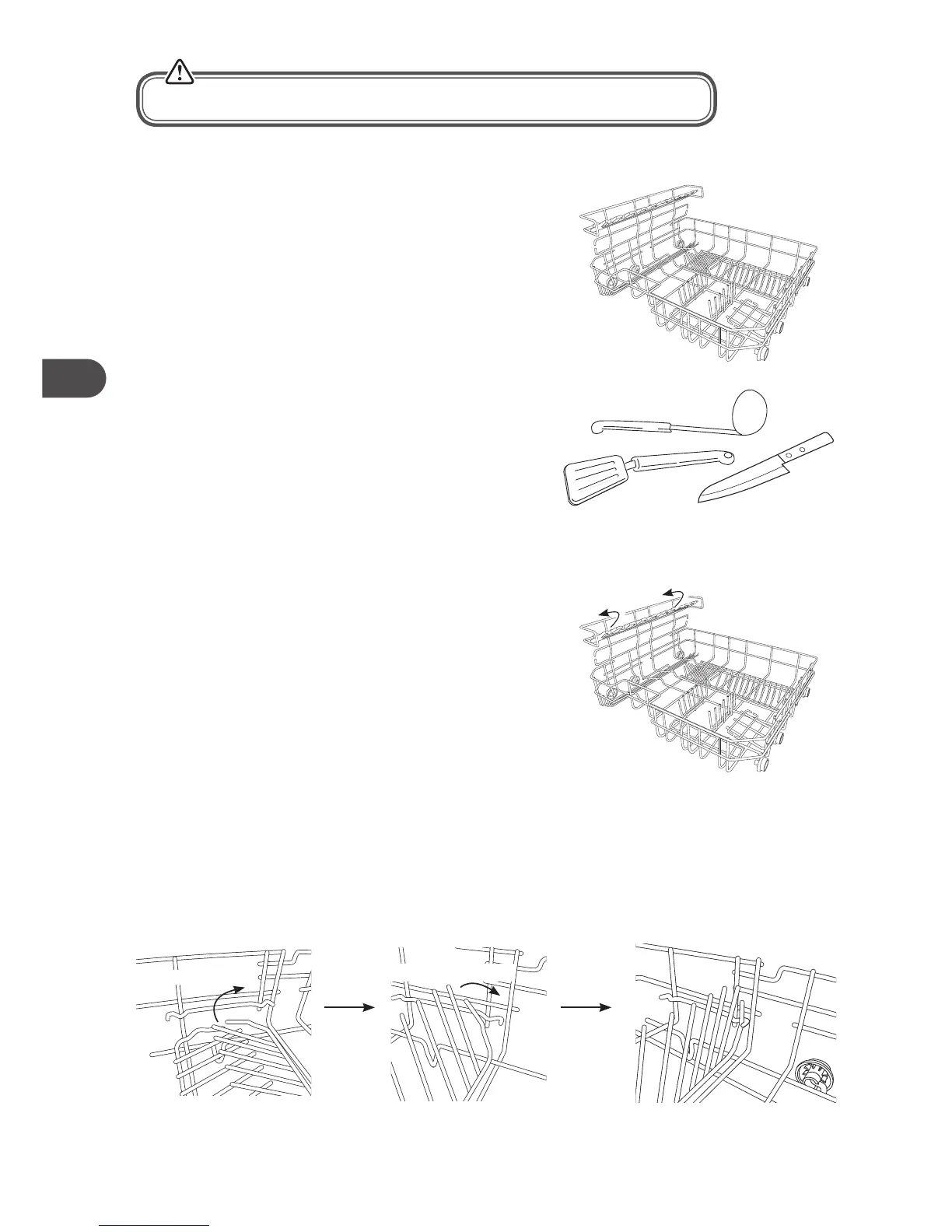 För att ge plats åt större föremål i diskmaskinen, lyft upp
