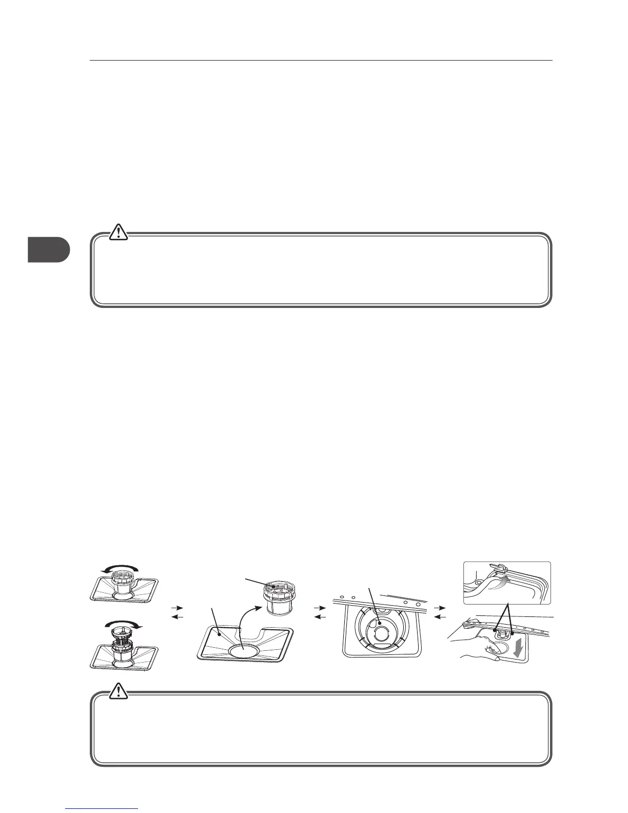 • Använd ALDRIG diskmaskinen utan att filtren sitter på plats. Felaktig placeing av filtren kan