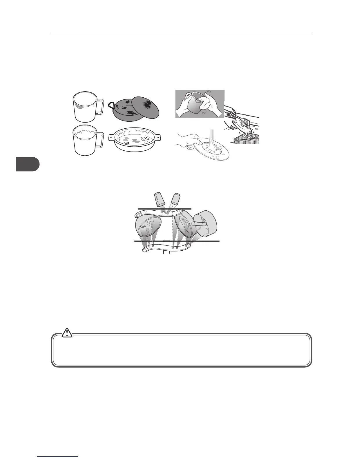 • Aseta ruokailuvälineet ja talousastiat niin, että vesi pääsee niihin kaikilta puolilta.