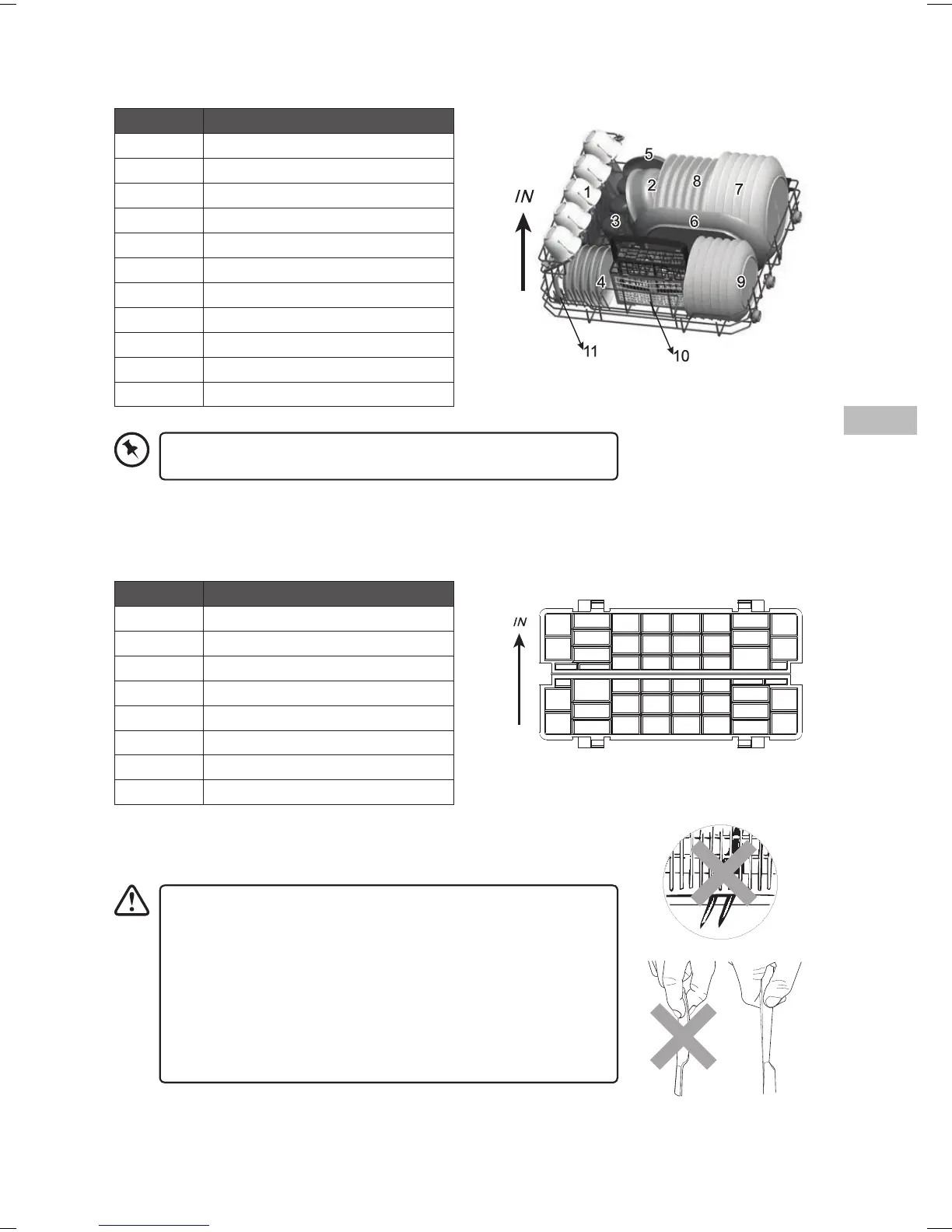 For optimum placement of crockery in the dishwasher basket, please refer to the following list and image.