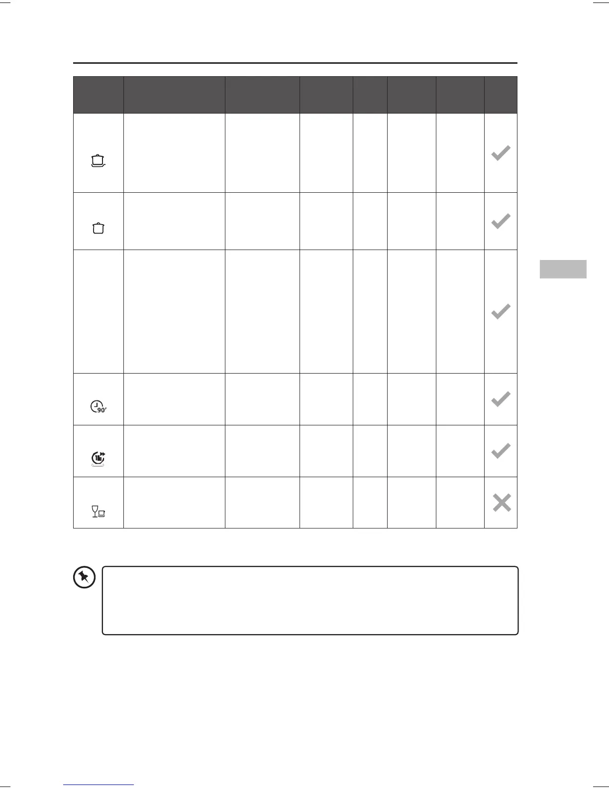 • Some wash programmes do not have a drying function, please refer to the Wash Cycle Table for more