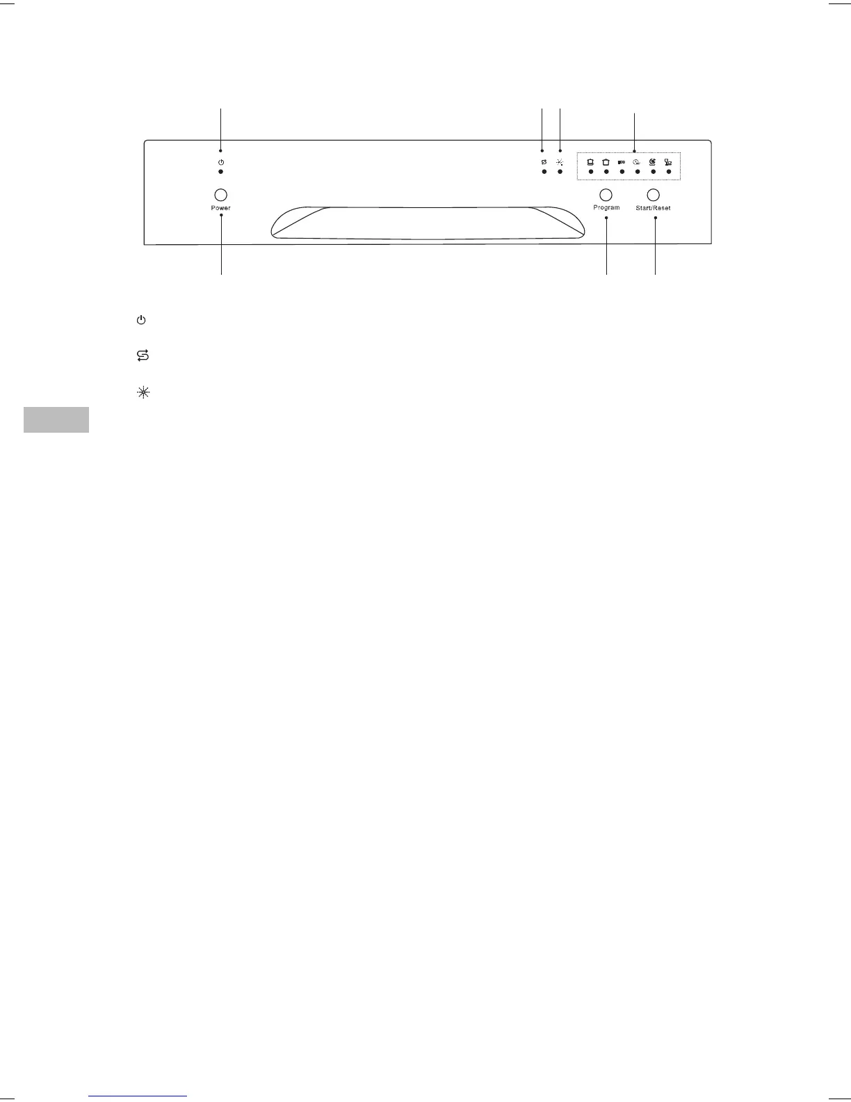 • Lyser når oppvaskprogrammet er valgt.