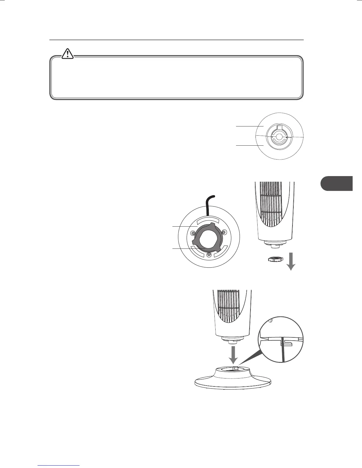 • Ventilatoren må ikke bruges, hvis den ikke er helt samlet. Sørg for at fodklemmerne, der