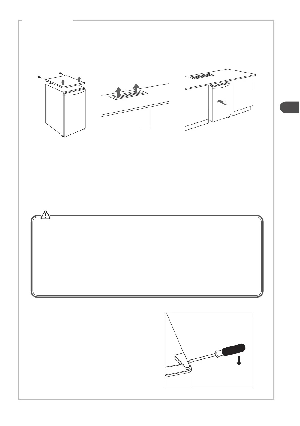 If the appliance is placed under a continuous worktop, the appliance lid (if applicable) may