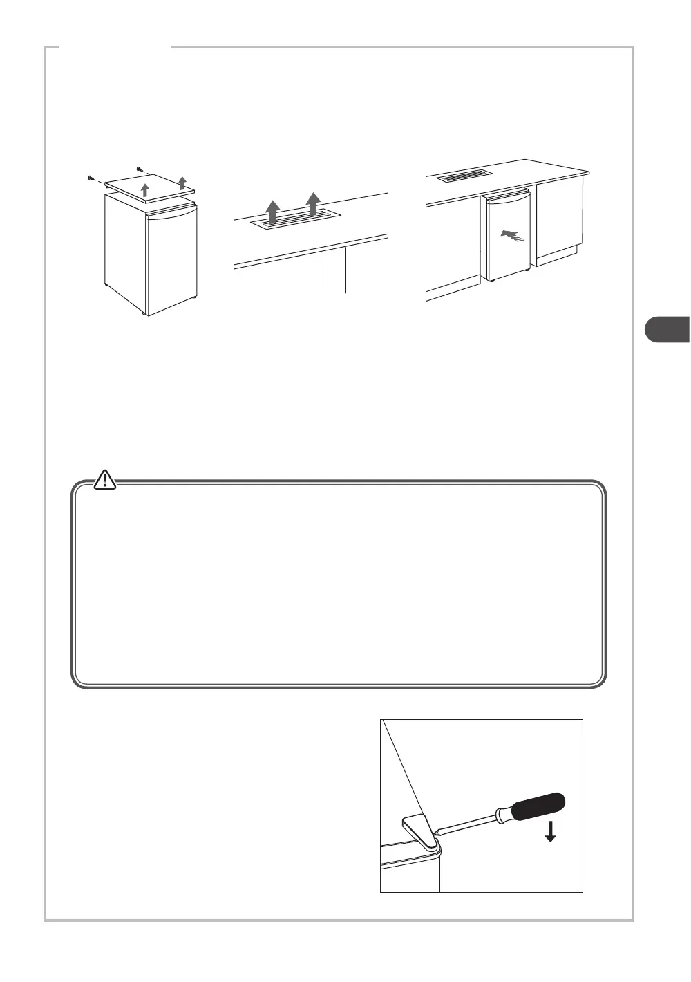 • För att ta av dörren är det nödvändigt att luta skåpet bakåt. Du bör luta