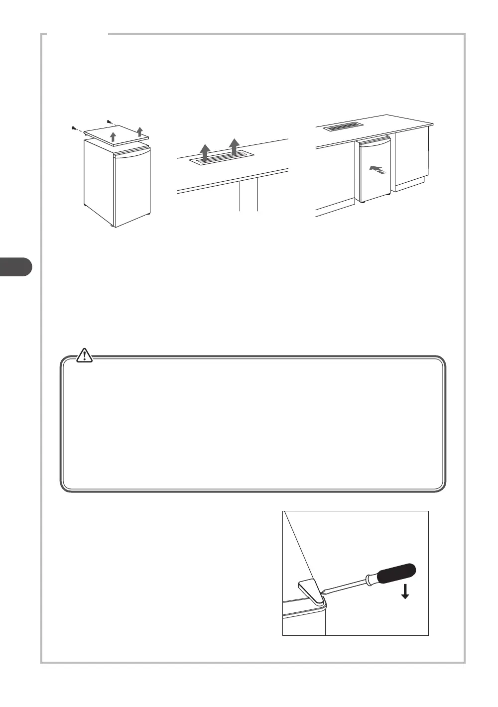 Jos laite on asennettu jatkuvan pöytätason alapuolelle, laitteen kannen (jos on) voi