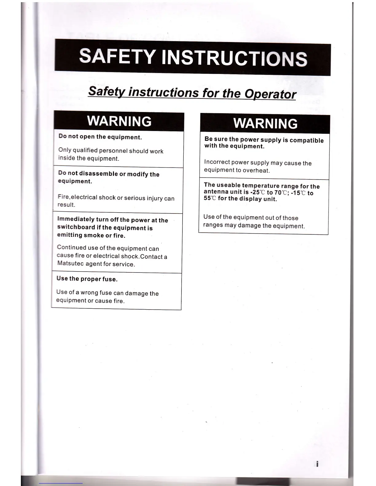 Matsutec HP-33 - Safety Instructions; Safety Instructions for the Operator
