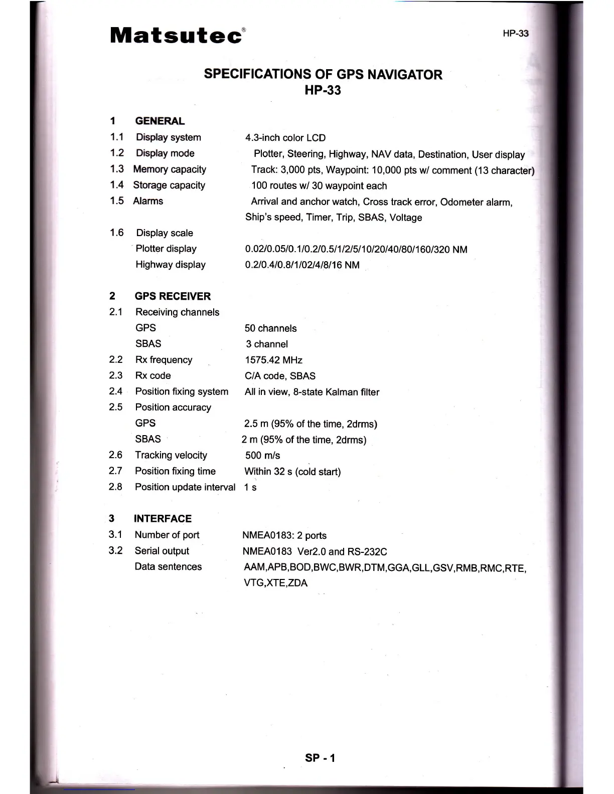 Matsutec HP-33 - Specifications