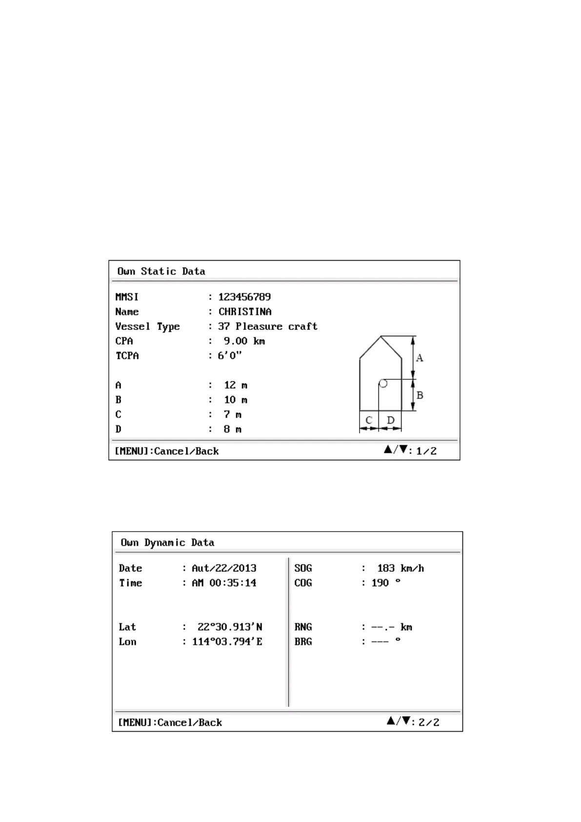 Own Dynamic Data screen shows your dynamic vessel information such