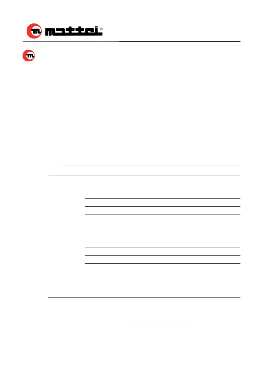 Mattei BLADE 5 - Service and Parts Requests; Technical Service Request Form