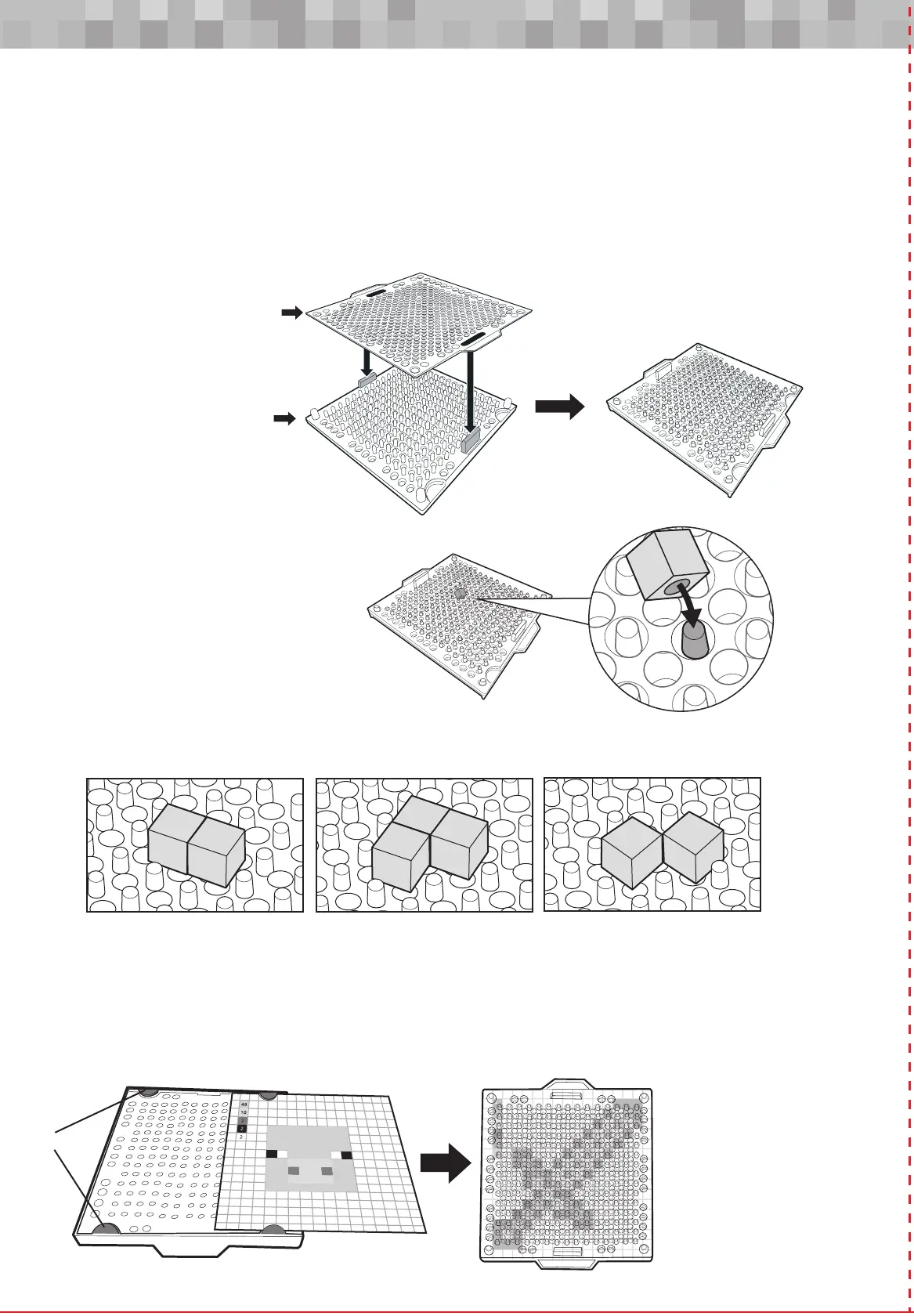 template into the bottom of the tray with the pattern you want to build facing toward the pins – make sure