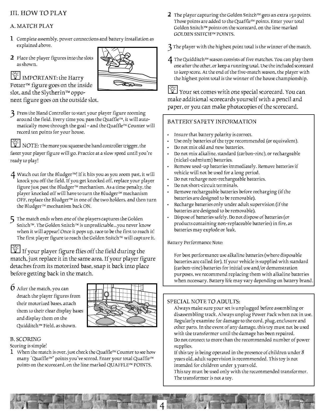 Mattel Quidditch - Playing the Game and Safety; Match Play Instructions; Scoring Rules; Battery Safety Information