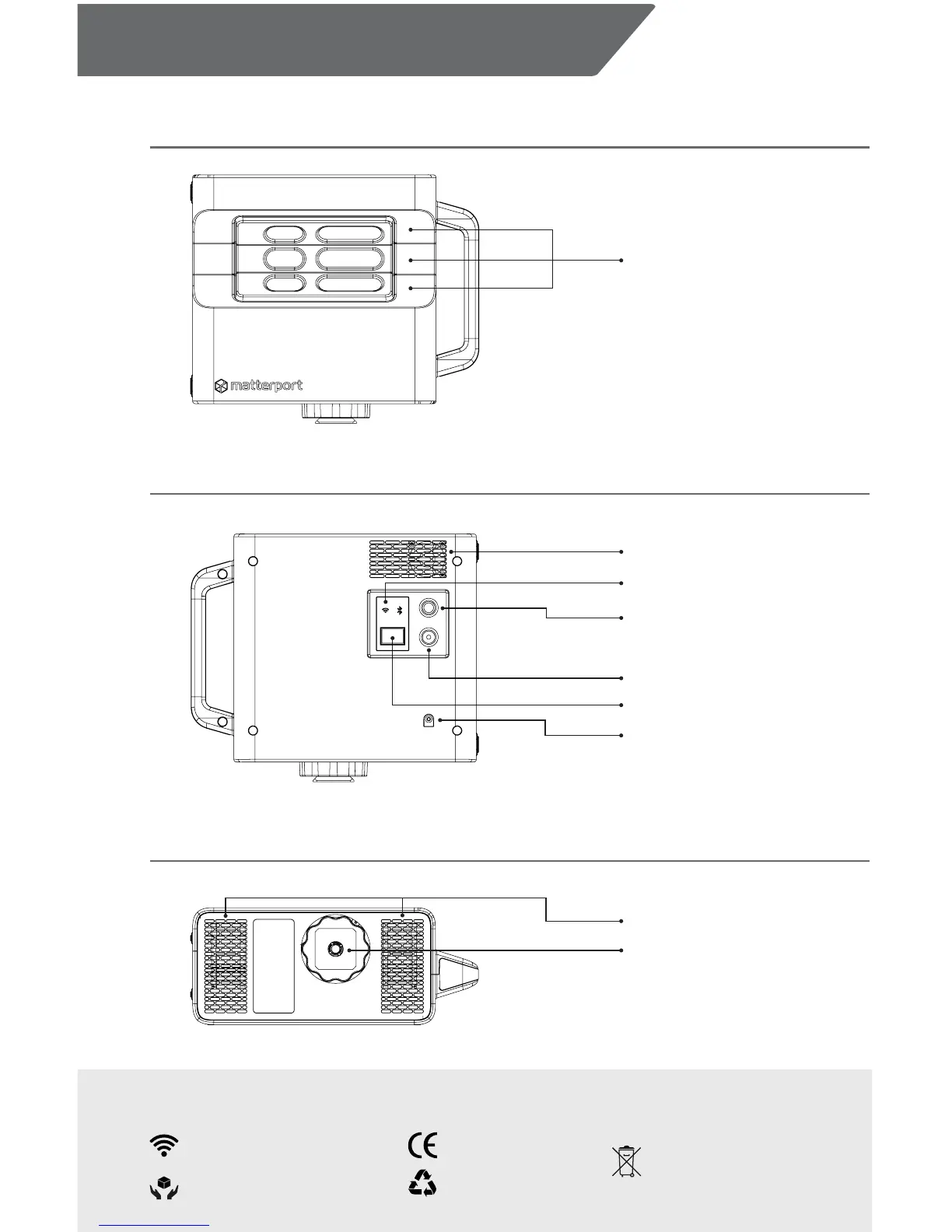 Matterport Pro2 - Vue de Devant; Vue de Larrière; Vue de Dessous
