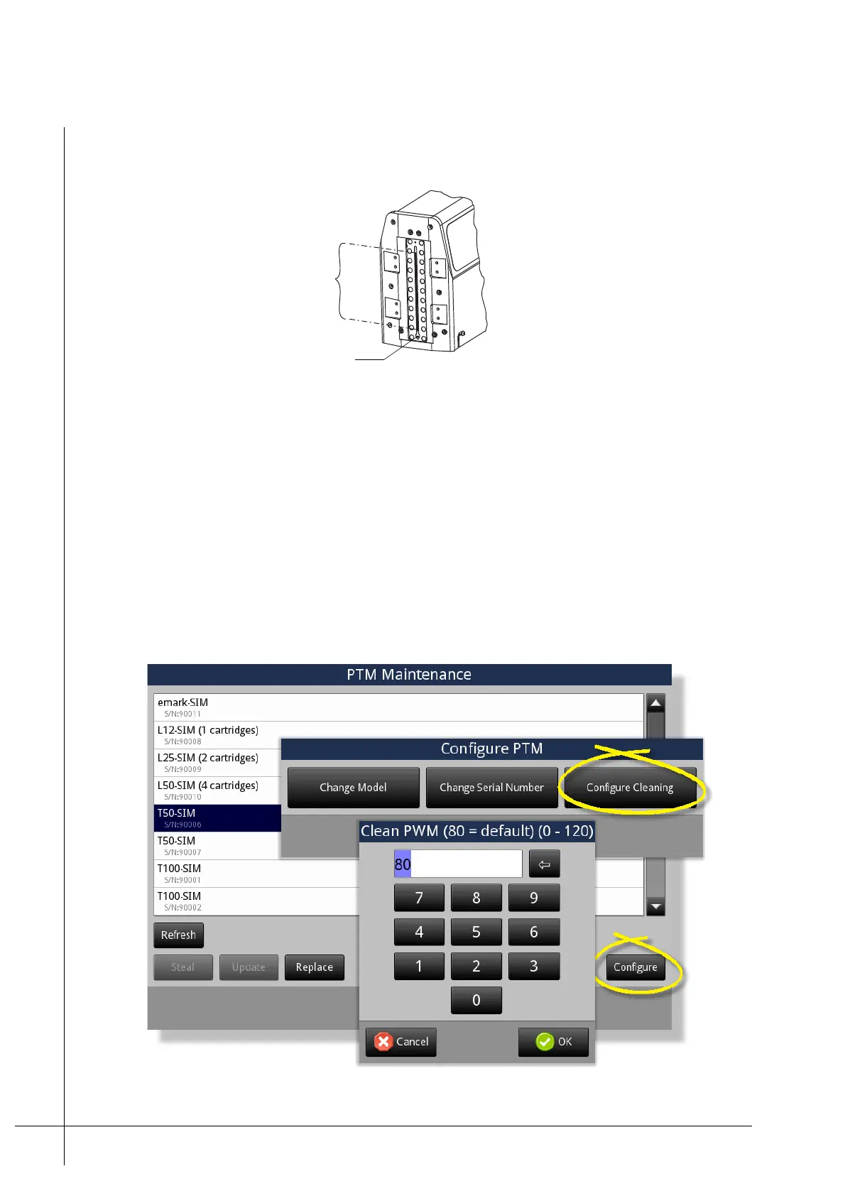 Maintenance. Tapping the PTM button will display the PTM Maintenance window, as shown
