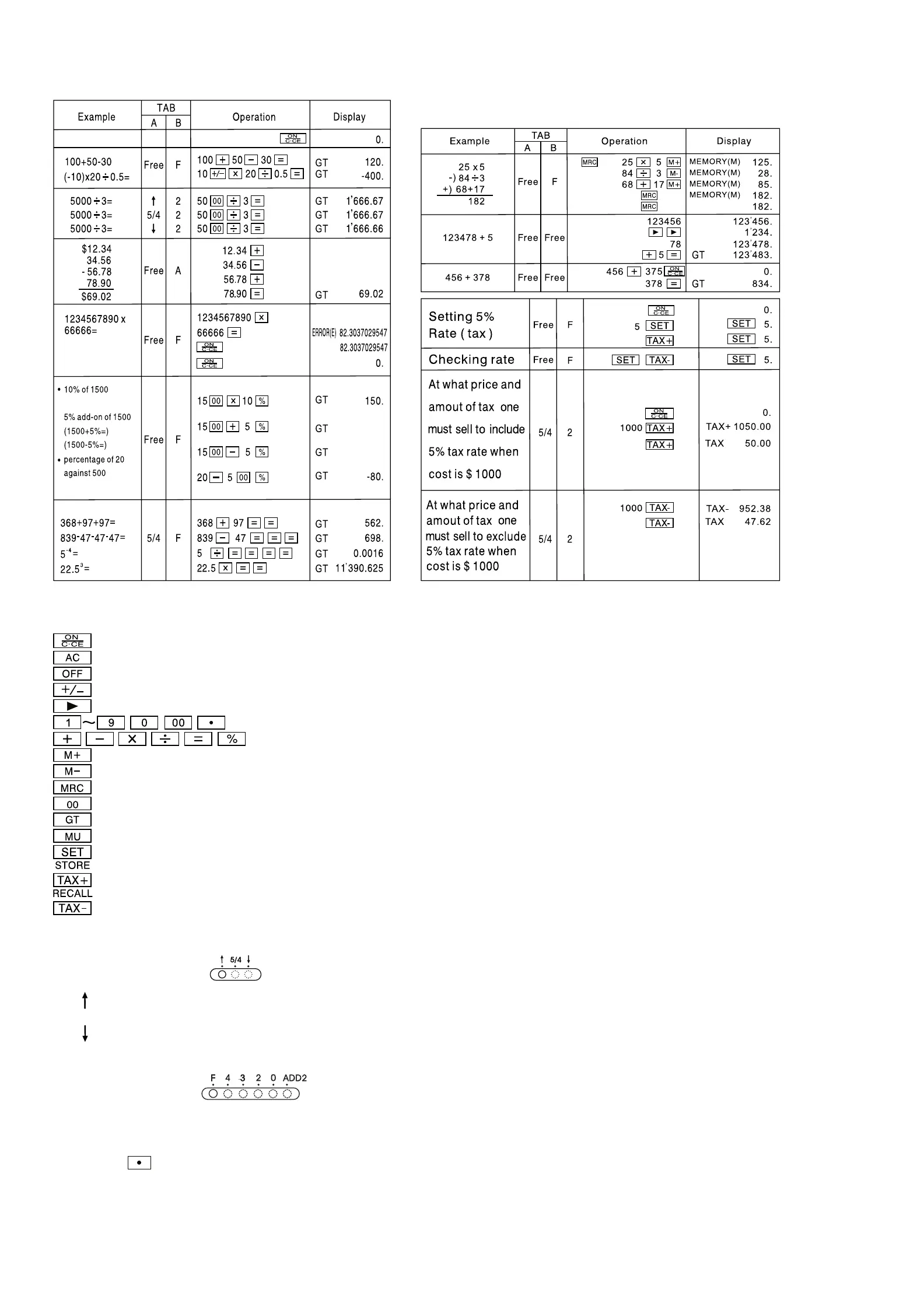 : Price without tax keys and recall tax rate when pressing „SET“ & „TAX-“ keys