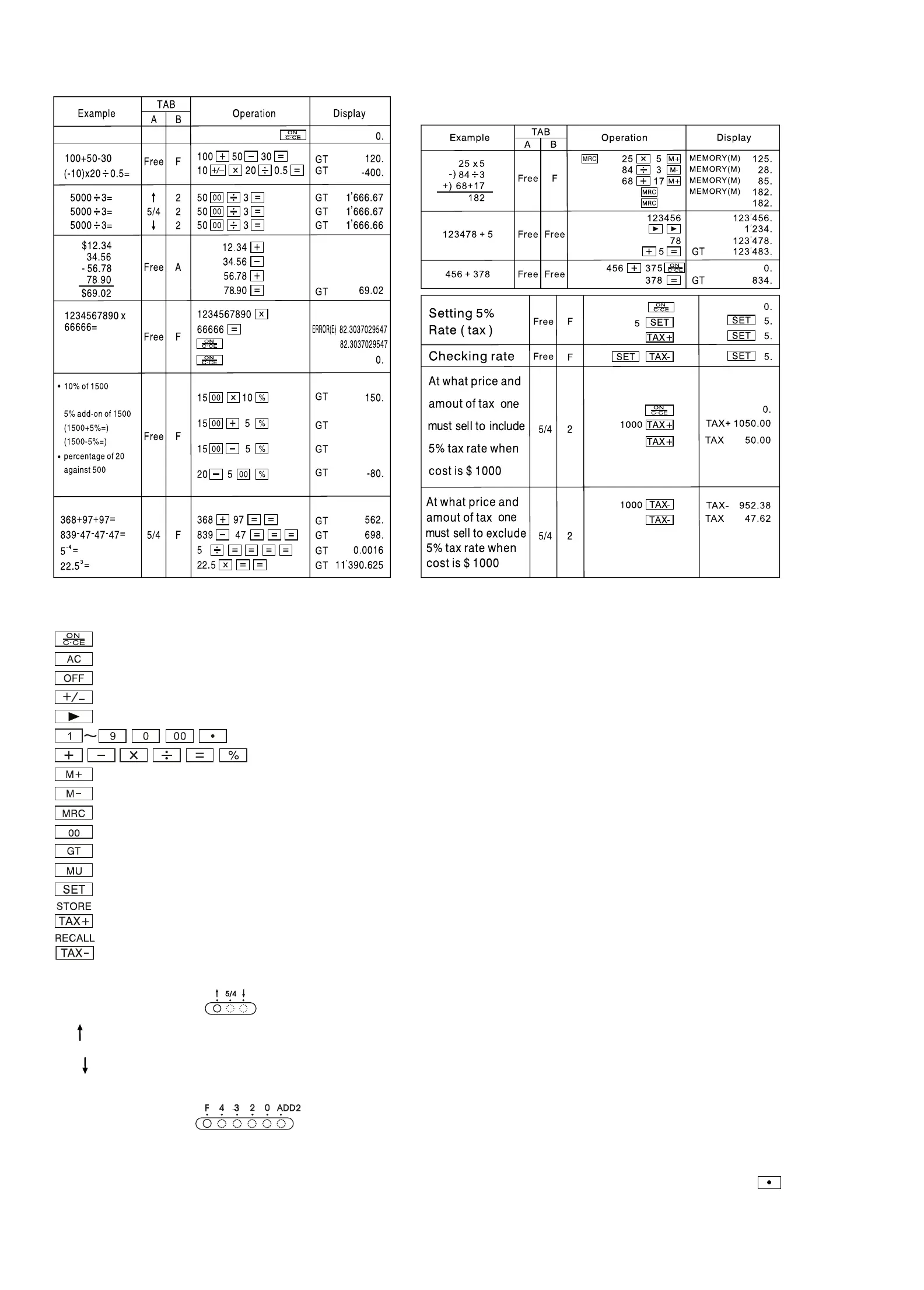 : Taster til pris uden afgiftssatser og tilbagekald afgiftssats ved tryk på "SET" & "TAX-" tasterne
