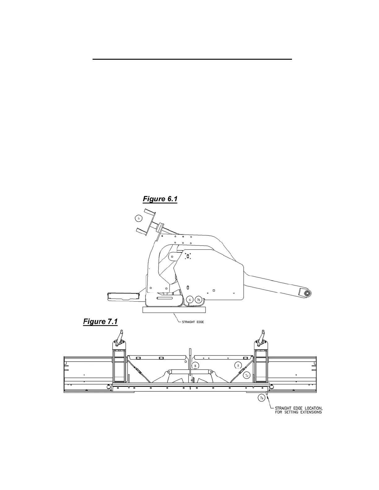 6. (See Figure 6.1) With the extensions completely closed, adjust the screed depth handle