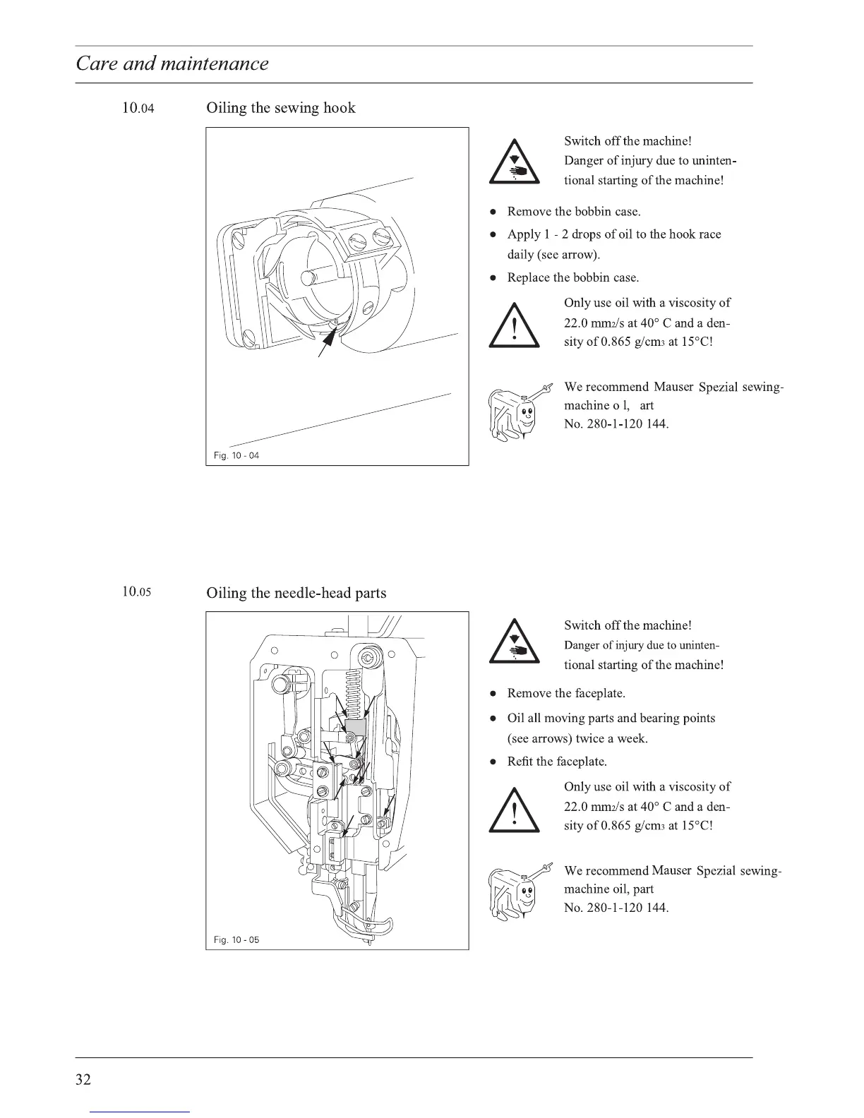 Mauser MA 335 - Oiling the sewing hook; Oiling the needle-head parts