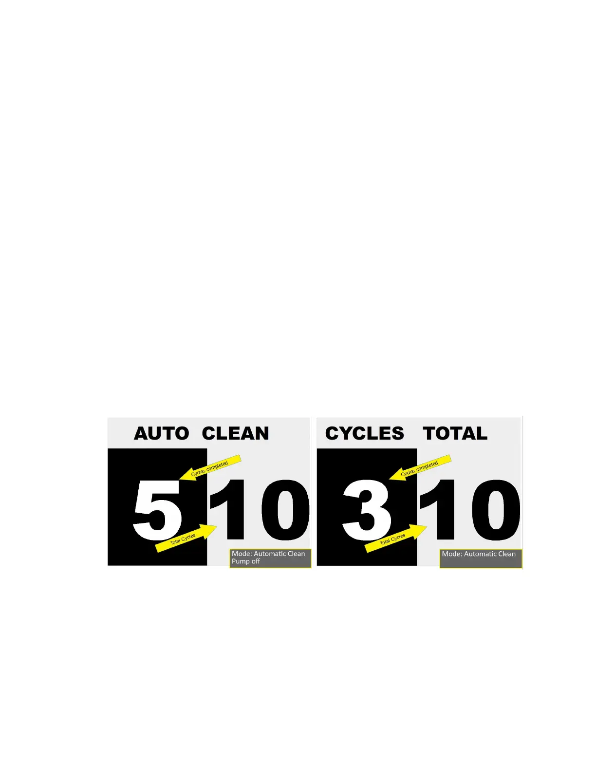 display “CYCLES TOTAL” and a total of completed cycles. The following steps describe how to