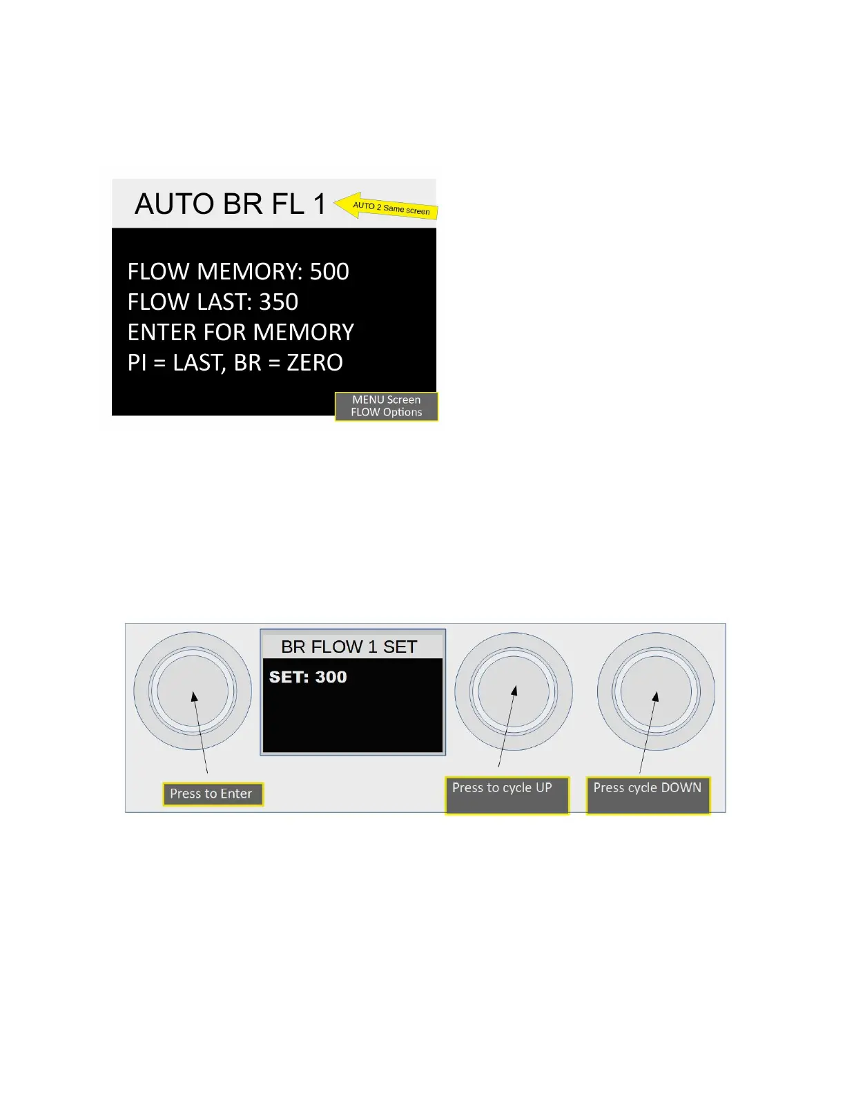 fives if over a setting of thirty. Once set to the desired flow Enter will save the setting and move