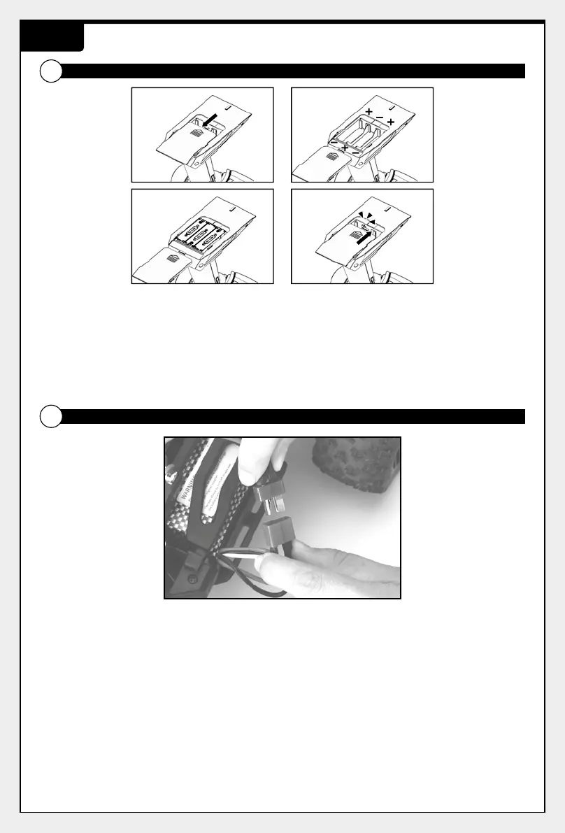Transmitter Battery Installation Einlegen der Senderbatterien Mise en place des piles de l’émetteur Cómo preparar el transmisor