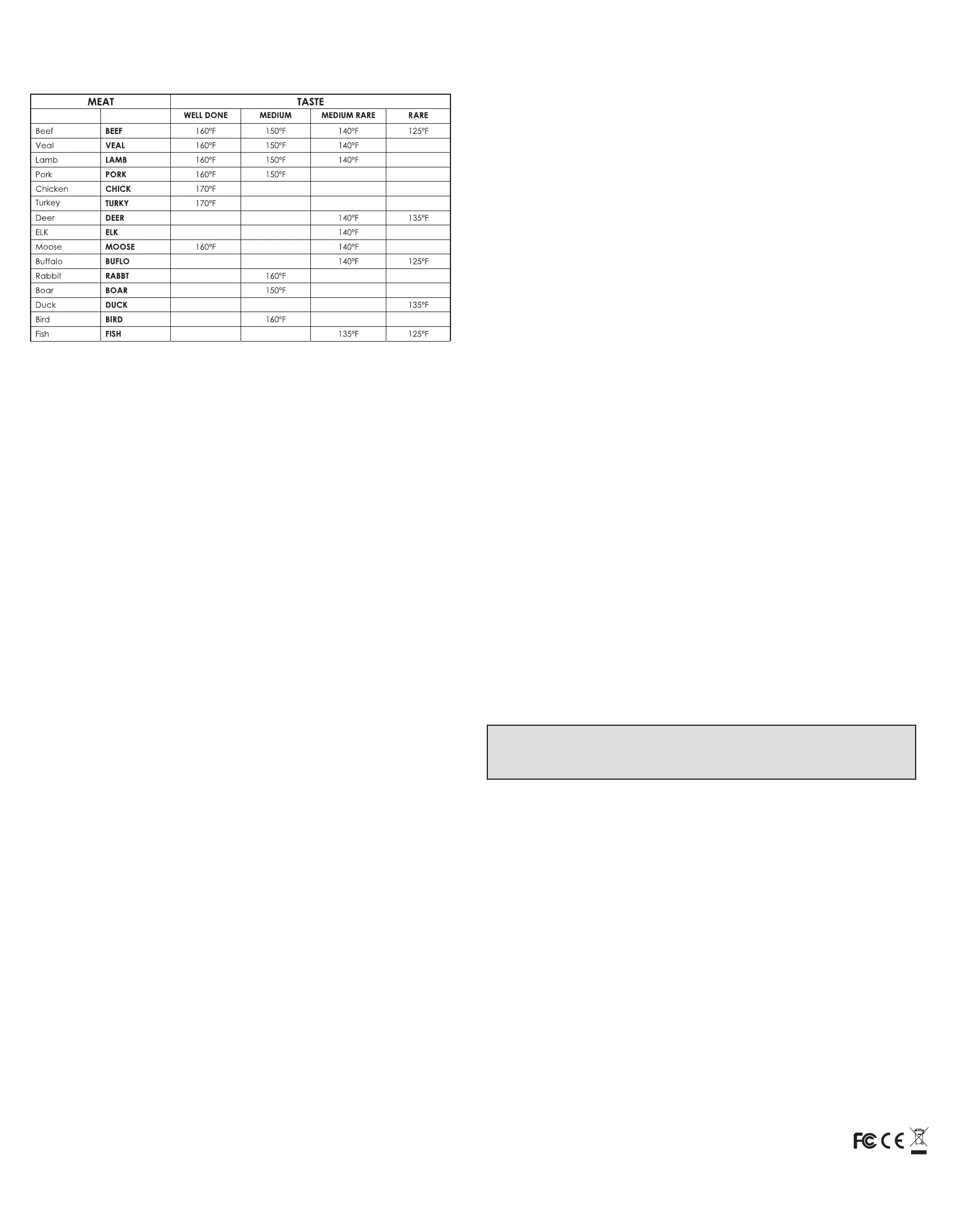 ºF, to activate the alarm. The unit will NOT beep or flash even if the actual BARBECUE