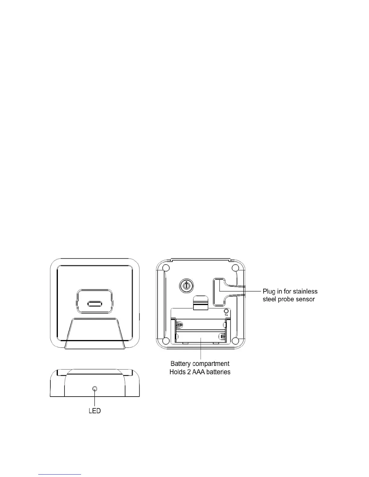 Press to select Thermometer or Timer mode. Press and hold for 2 seconds to enter RF registration