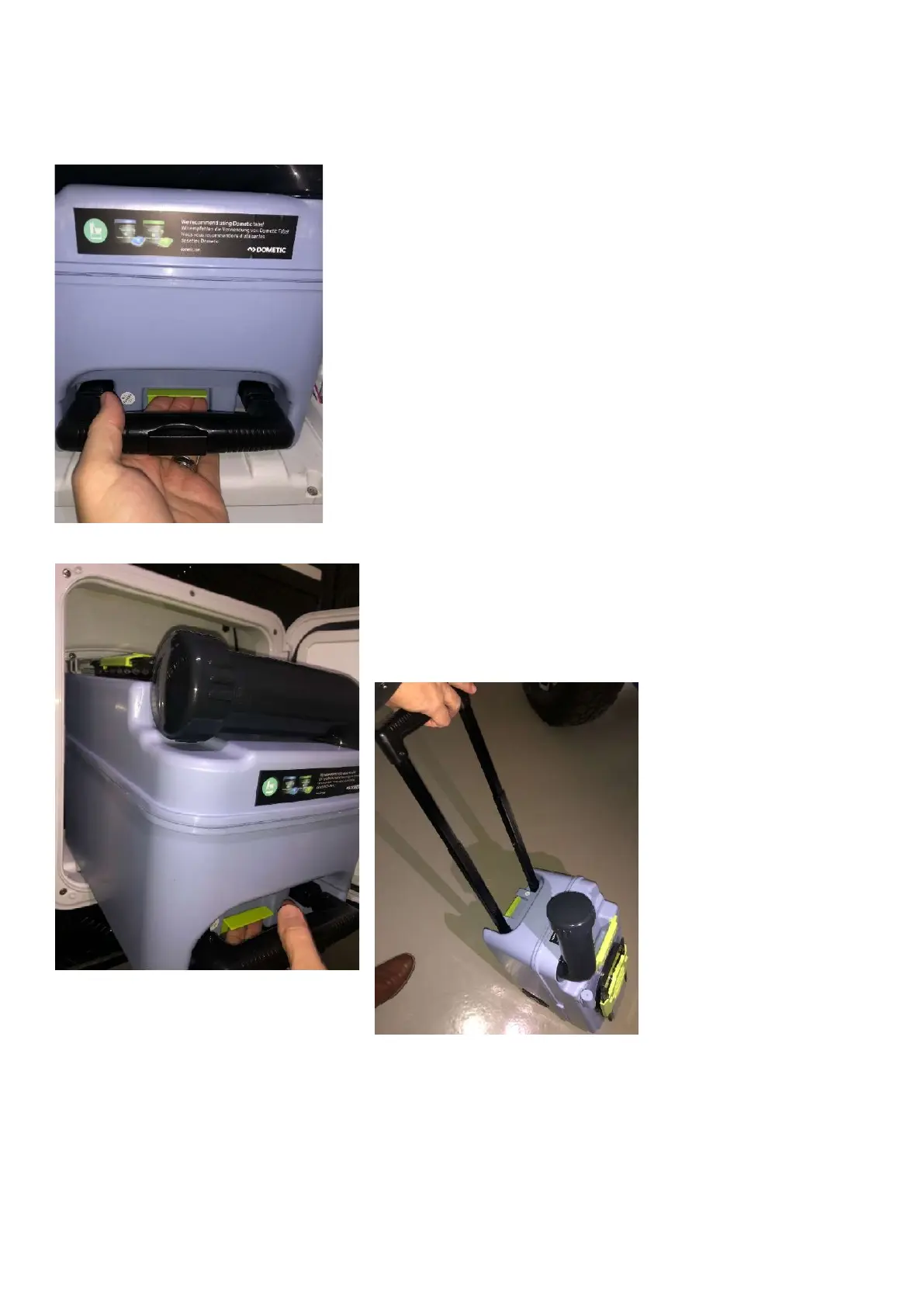 - Pull the handle out to full extension and wheel the cassette to the dump