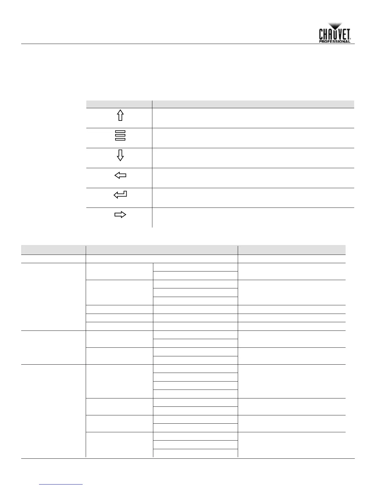 Navigates upwards through the menu list or increases the numeric value