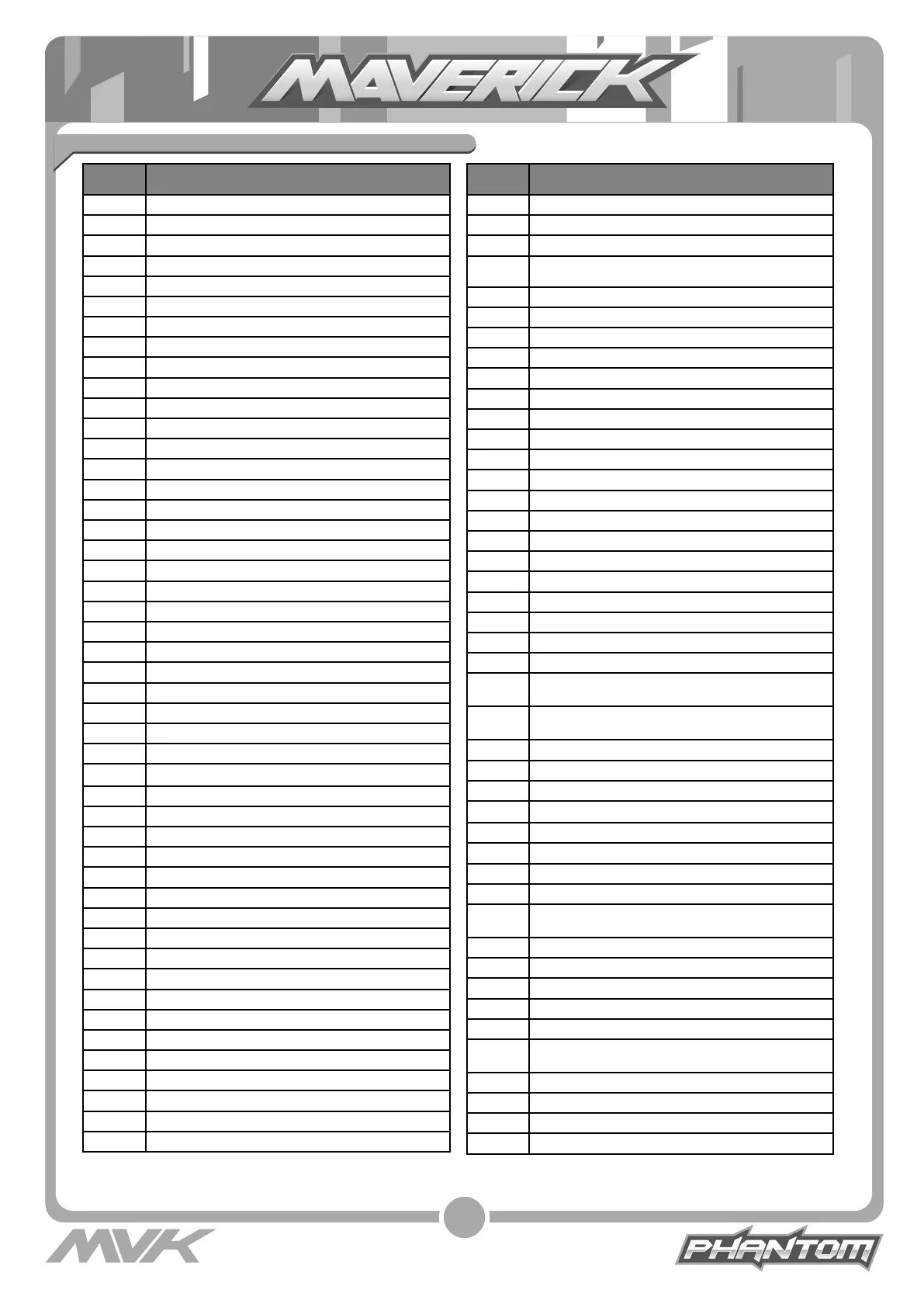 Parts List/Teileliste/Liste des Pièces/Listado de piezas