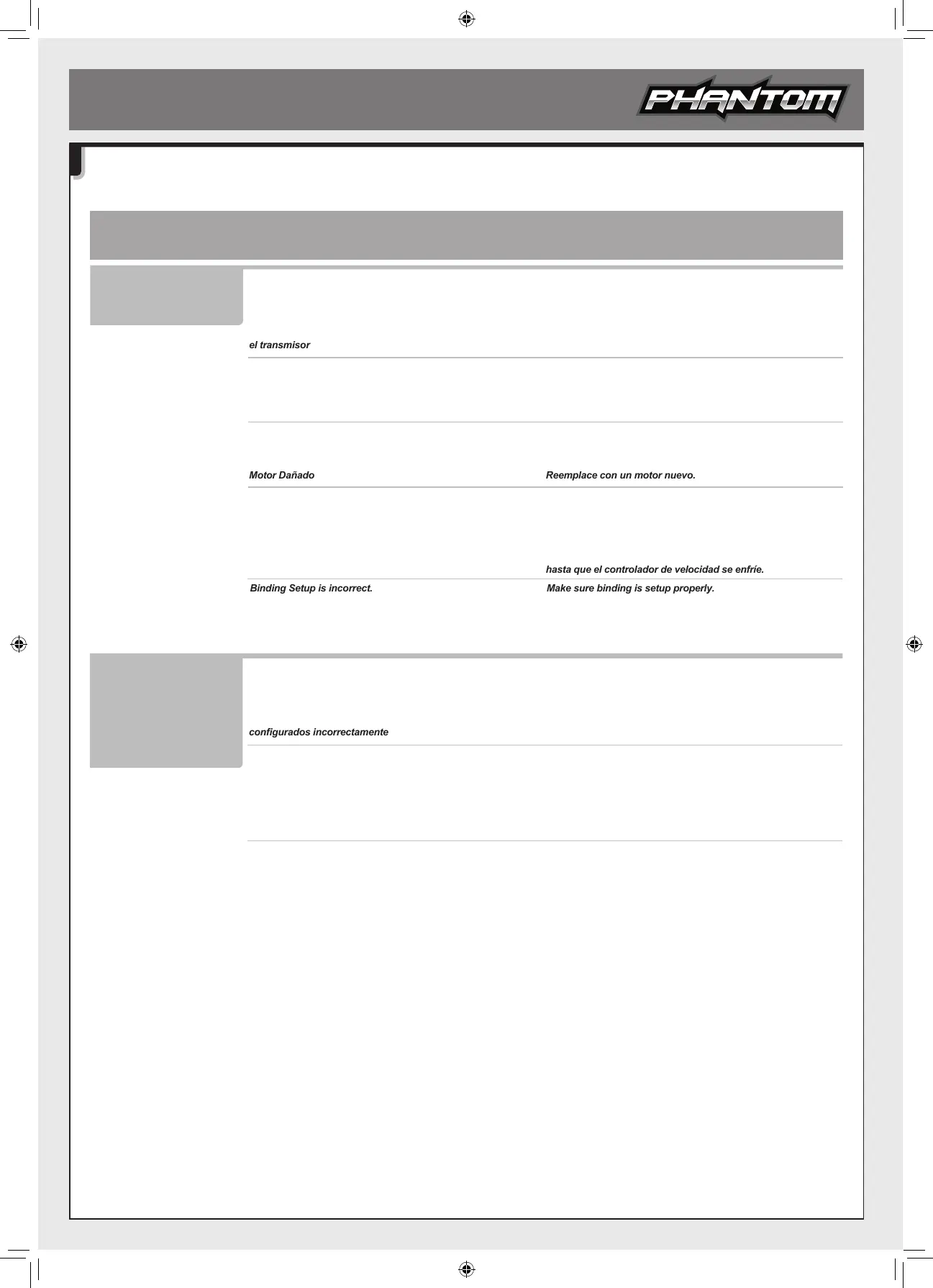 Si se encuentra con cualquier otro fallo mientras pone en funcionamiento el vehículo, por favor contacte con su tienda de artículos de hobby local o bien