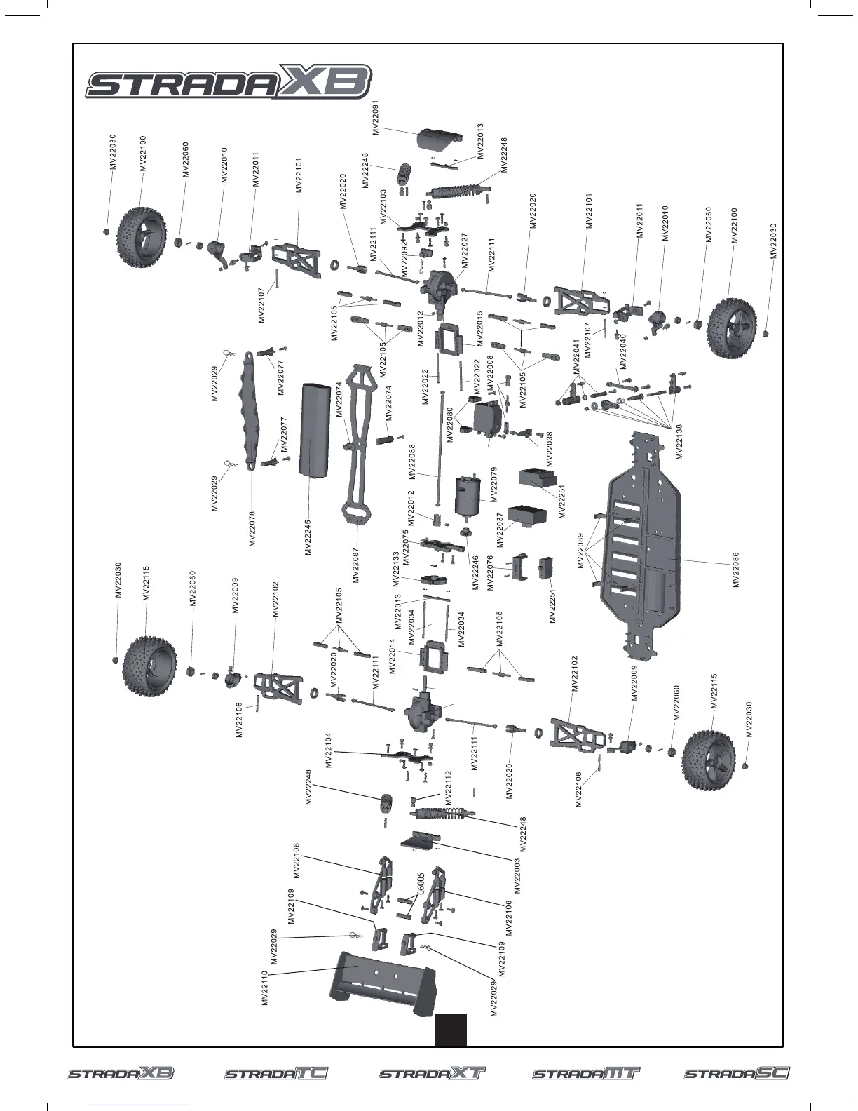 Maverick Strada SC - Strada XB Exploded Diagram; Dessin Éclaté Strada XB; Strada XB Explosionszeichnung; Diagrama en Despiece de Strada XB