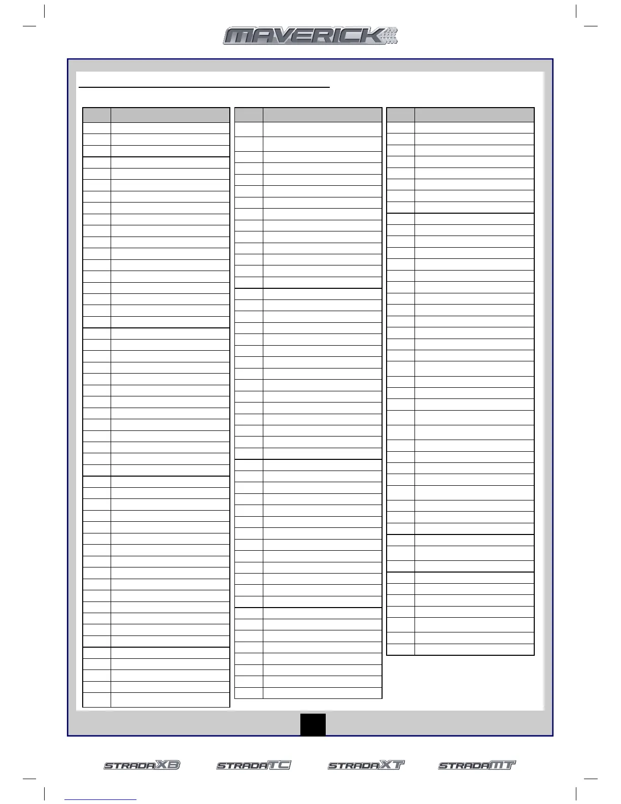 Maverick Strada MT/TC/XB/XT Insructions & Spares