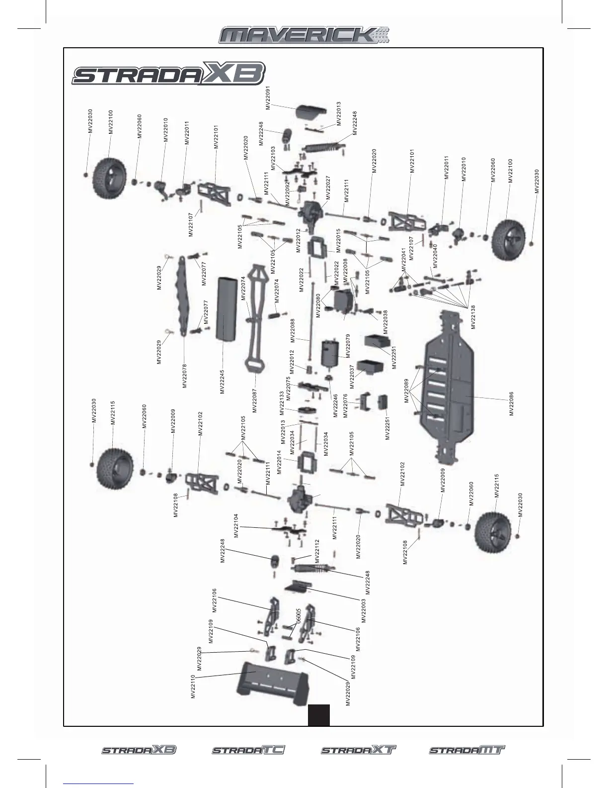 Maverick STRADA XT - Strada XB Exploded Diagram; Dessin Éclaté Strada XB; Strada XB Explosionszeichnung; Diagrama en Despiece de Strada XB