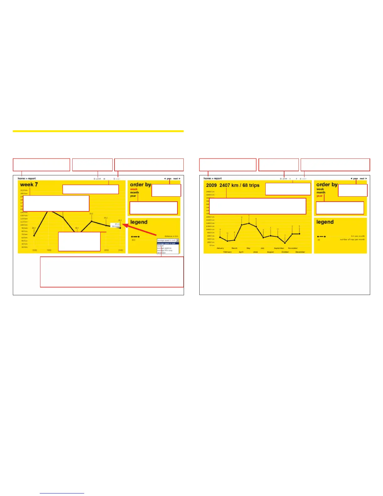 Choose the second information that will be reported above each trip of the graph, among: