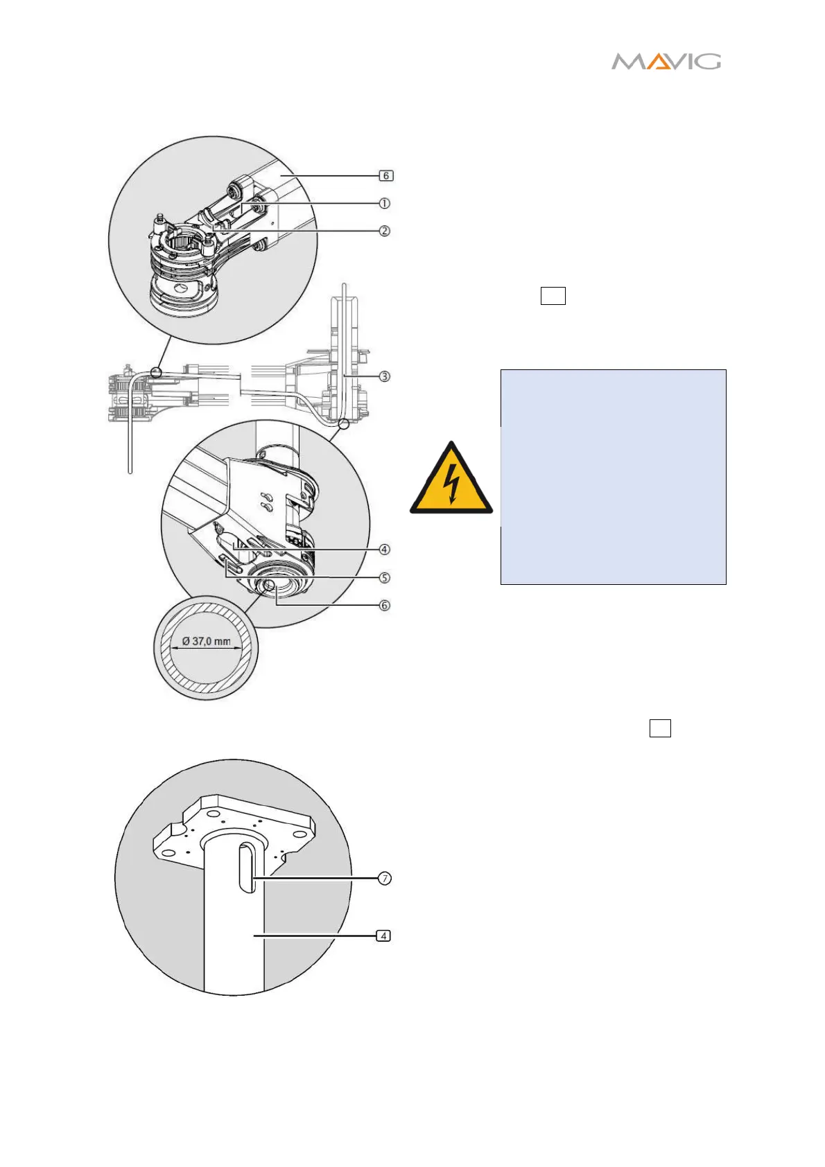 2. Route the cables into the aperture ⑥ and
