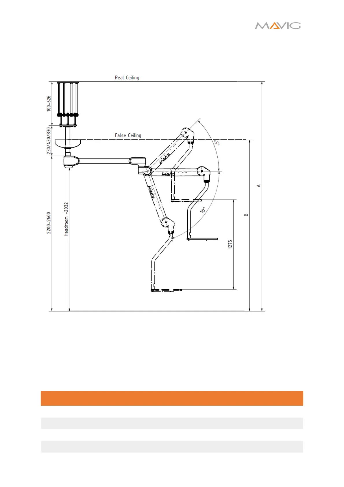 1. The bottom end of the ceiling column must be located at 2200 - 2600 mm above the