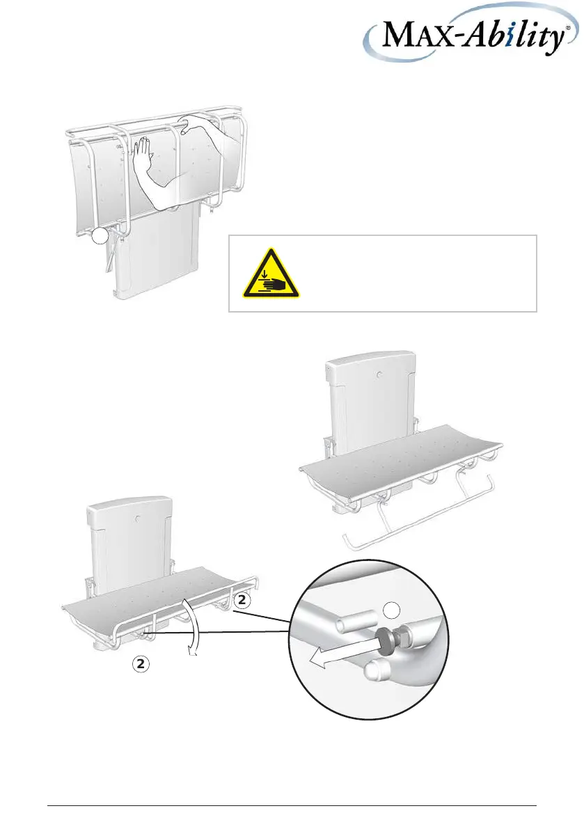 To fold the safety rail away: Release the two locks ② simultaneously and