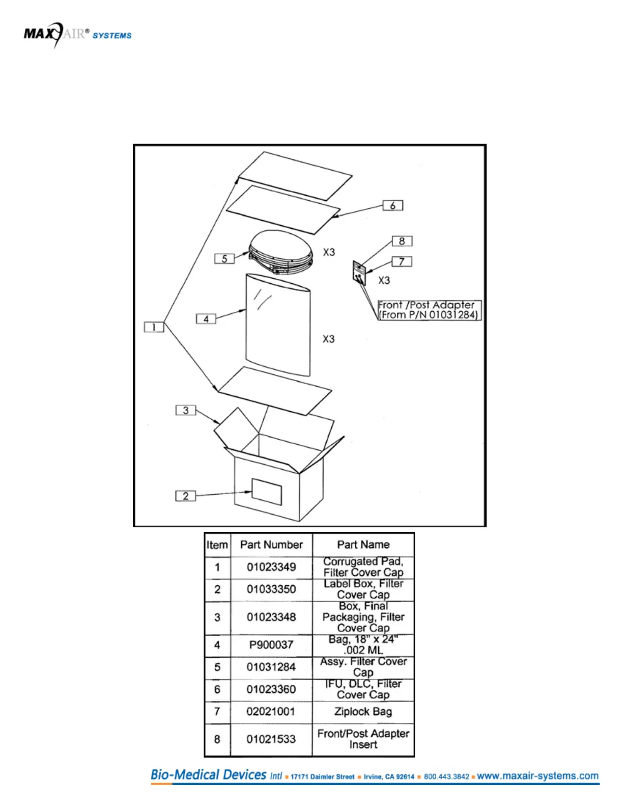 Carefully unpack the 2061-03 MAXAIR CAPR Helmet Filter Cover Cap (FCC) from the shipping box, 3 per box. Verify there