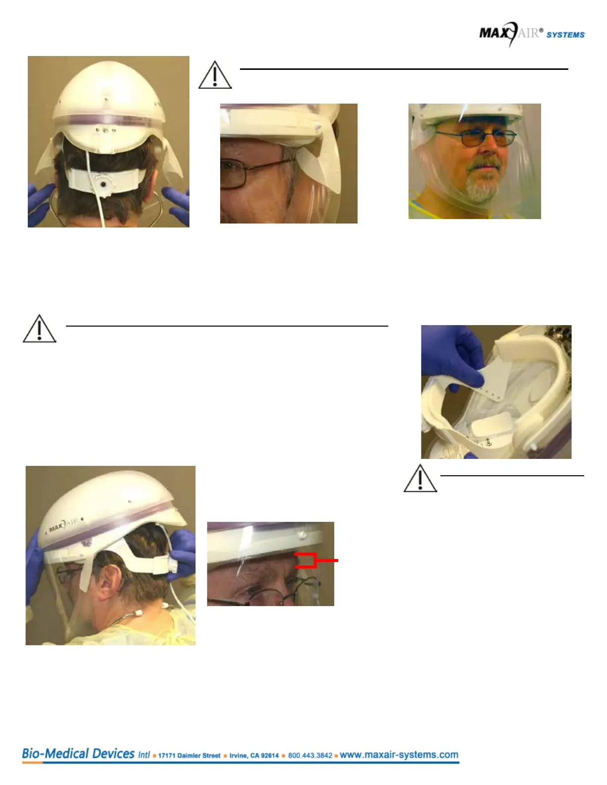 9. Position the Helmet so that the front headband is within ½ inch of the eyebrows and