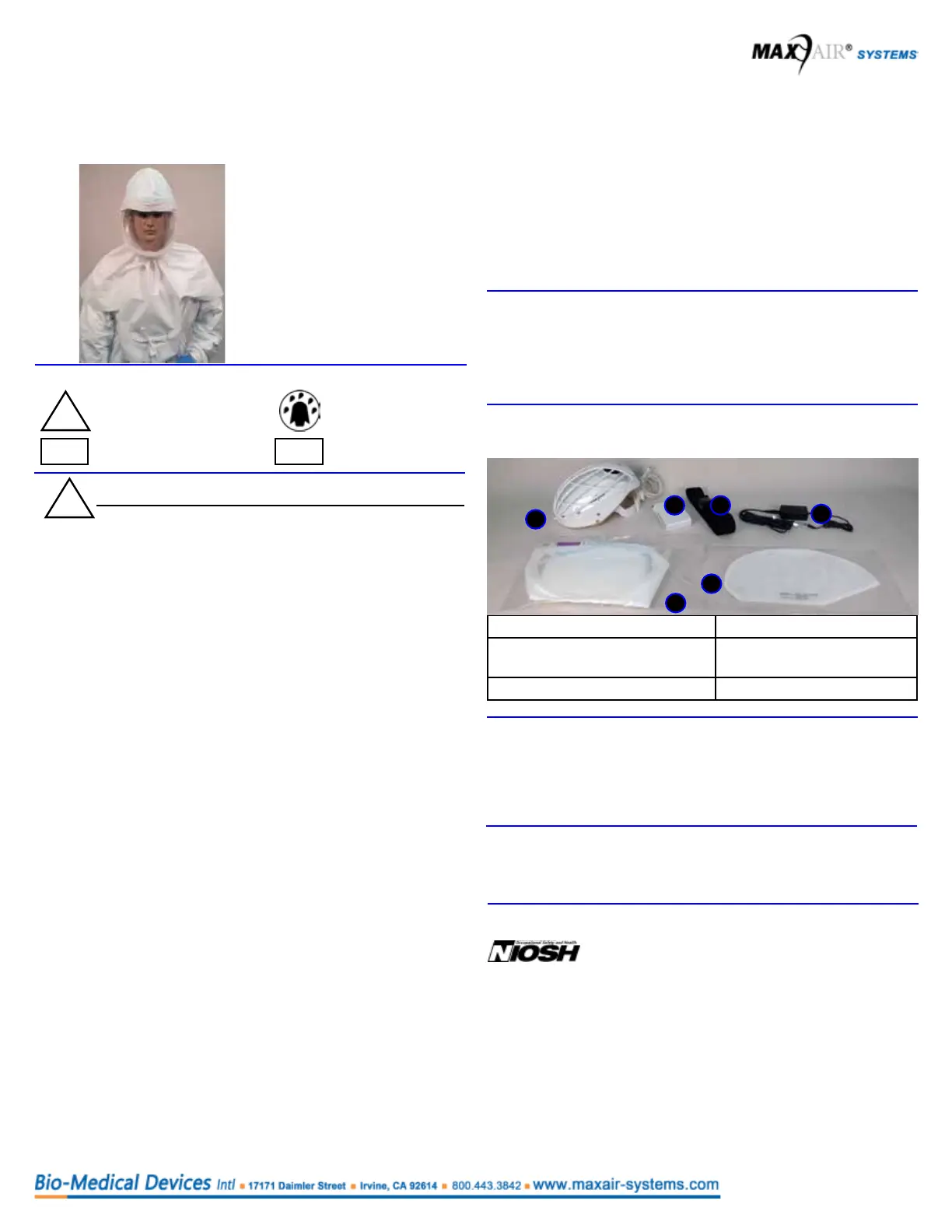 Use only MAXAIR Systems/ NIOSH approved compatible