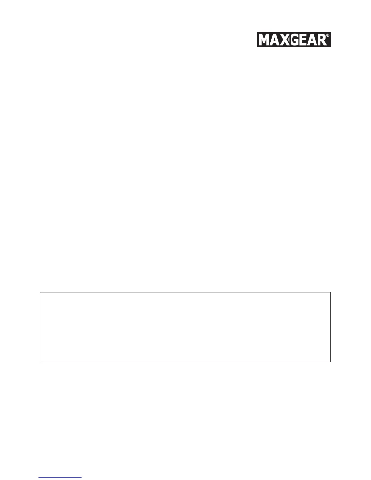 Many thanks for purchasing this Maxgear product. Always read the safety instructions below