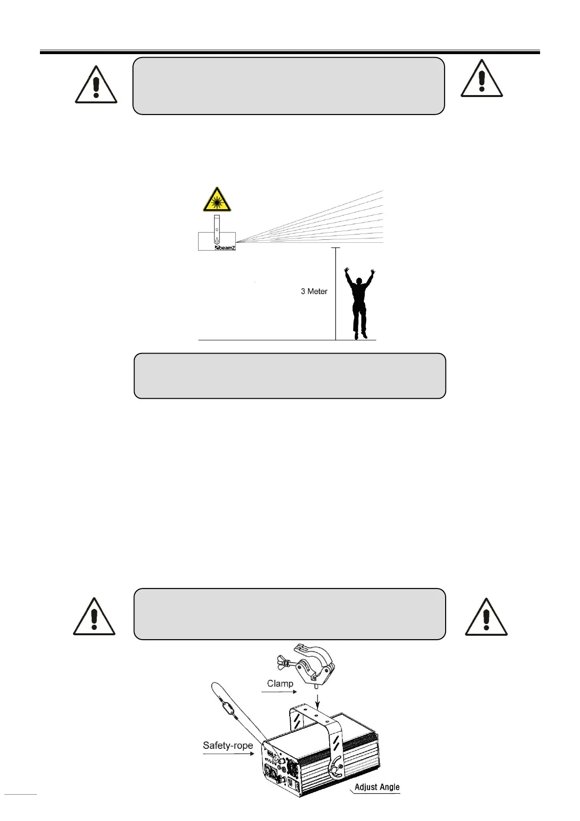 horizontal se requiere entre la luz láser y la audiencia u otros espacios públicos.