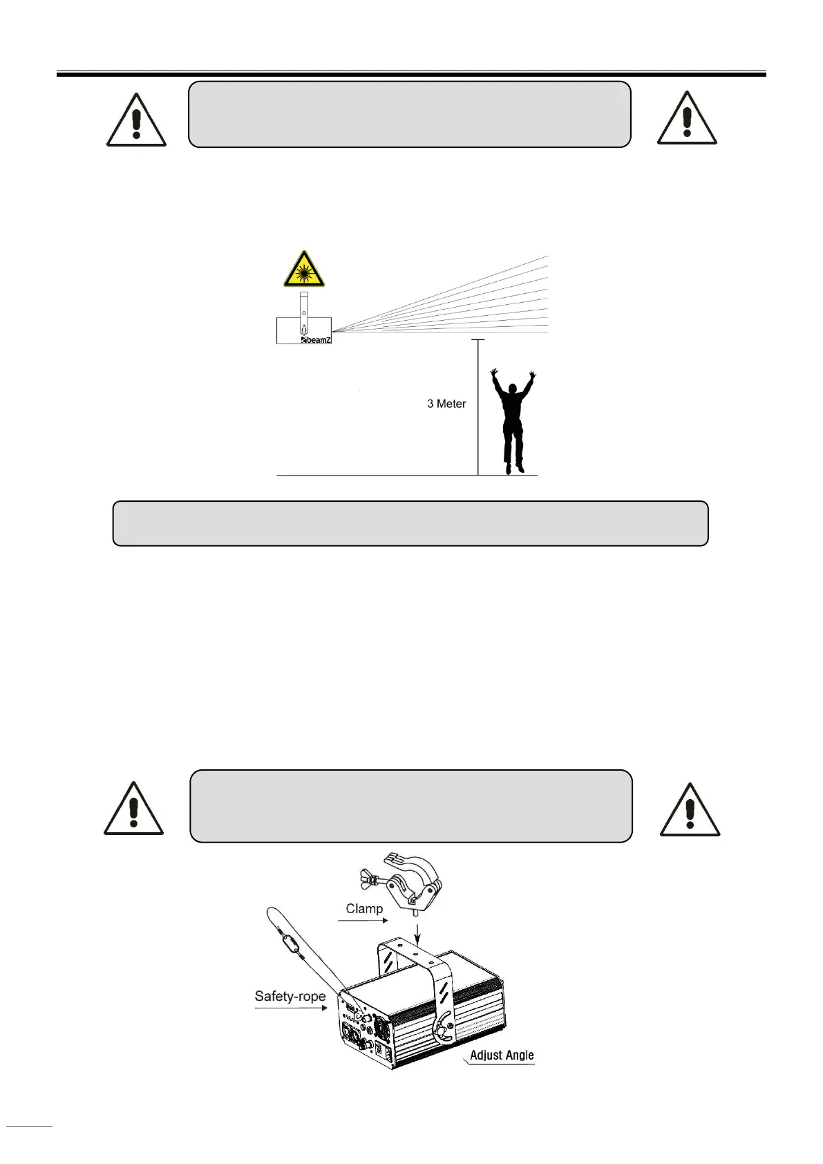 • The installation must always be secured with a secondary safety attachment, e.g. an appropriate catch net. This