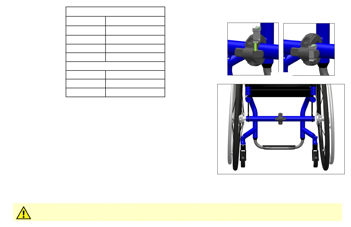 Die Klemme muss mittig zwischen den beiden Hinterrädern des Roll-stuhls am Achsaufnah-